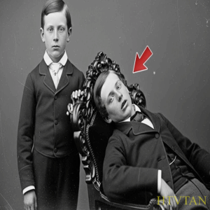 George, innocently posing beside his brother, could not have imagined he was participating in documenting one of history’s most disturbing medical mysteries. His hand, gently resting on Herbert’s shoulder, represents not only a farewell gesture, but a final touch between two brothers, one of whom was still silently fighting for life.