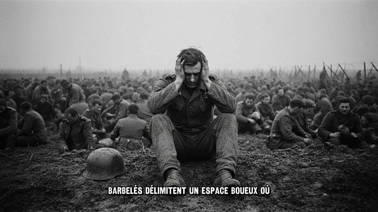 Un soldat américain hurle un ordre en anglais que personne ne comprend. La colonne s’arrête devant un champ transformé en camp provisoire. Des barbelés délimitent un espace boueux où s’entassent déjà des milliers de prisonniers. Hans traverse les fils sous la surveillance de gardes armées. Il observe les visages autour de lui y cherchant quelqu’un de sa compagnie.